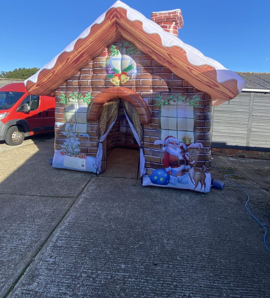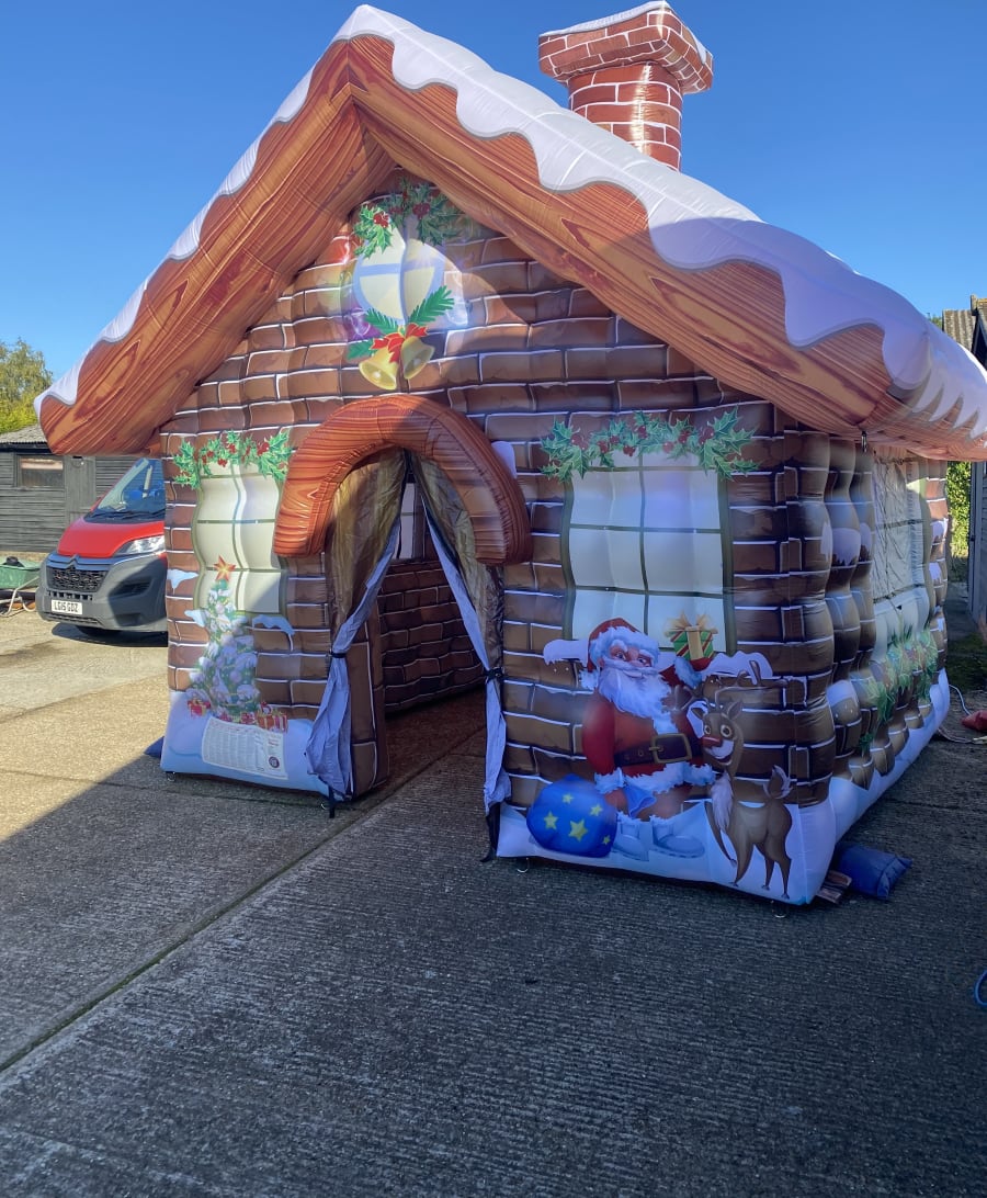 Looking to make your Christmas party or event one to remember for the little ones then we have the perfect solution with our amazing inflatable Christmas Grotto we have on offer to hire , featuring stunning artwork on both the outside and inside and in the shape of a real life log cabin this really will make any child's santa visit one to remember . Our inflatable Christmas grotto's we hire are a fantastic way of fund raising for schools or clubs just add a santa to sit inside and make the dream of visiting Father Christmas come true . We also have a wide range of other Christmas themed inflatables and games from Christmas bouncy castles , side show games and even inflatable snow globes to hire , just CLICK HERE to see our full range of products . Booking your inflatable Christmas grotto has never been so easy just select your date to check availability and you can book online 24 hrs a day 7 days a week if you need any help or advice we have an FAQs page or just give one of our team a call on 07895022736 or CLICK HERE to email our office , our vans cover most of Essex every day to check your area just visit our areas covered page .