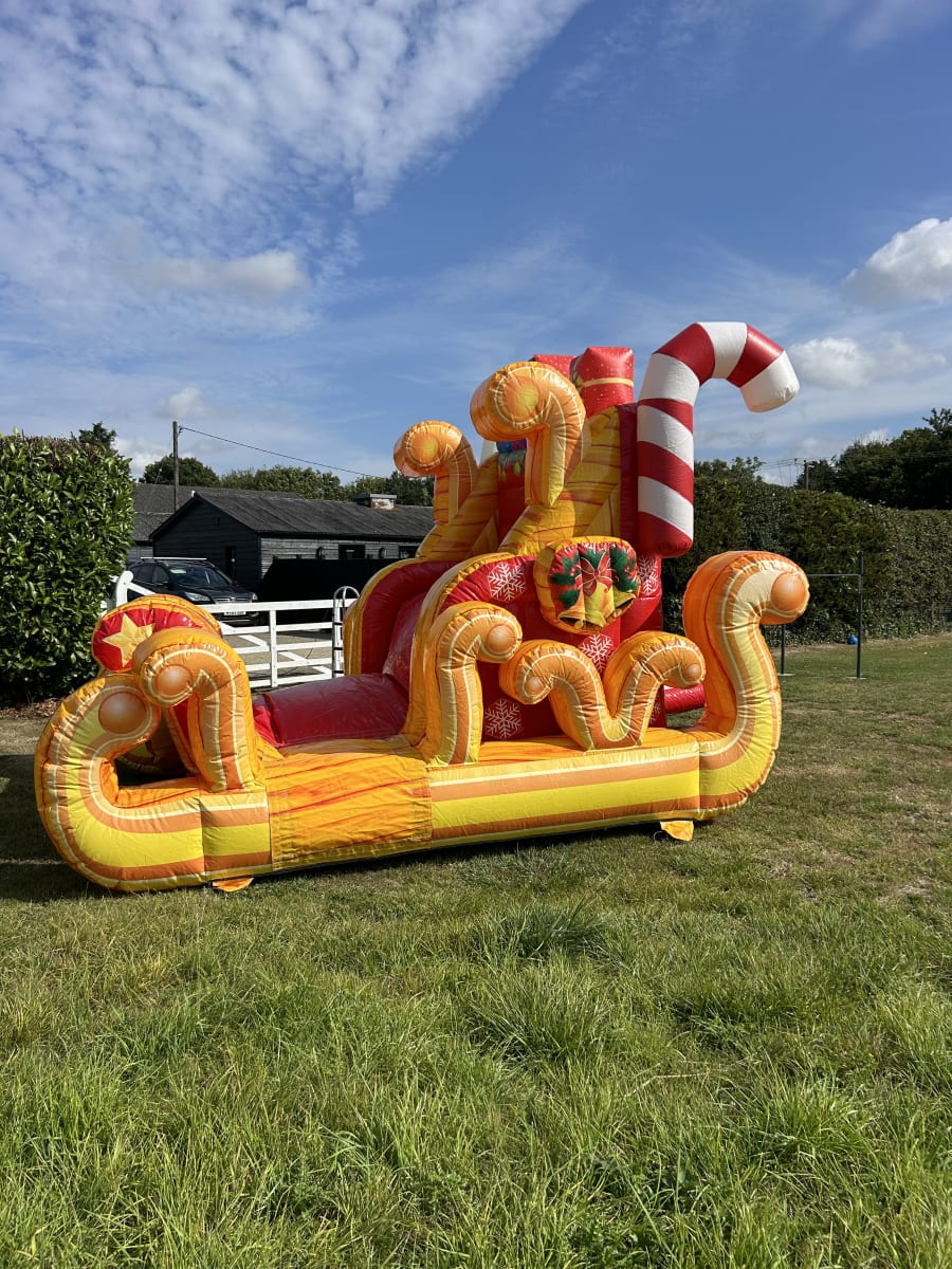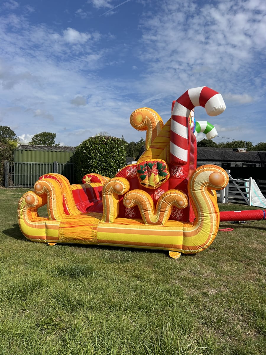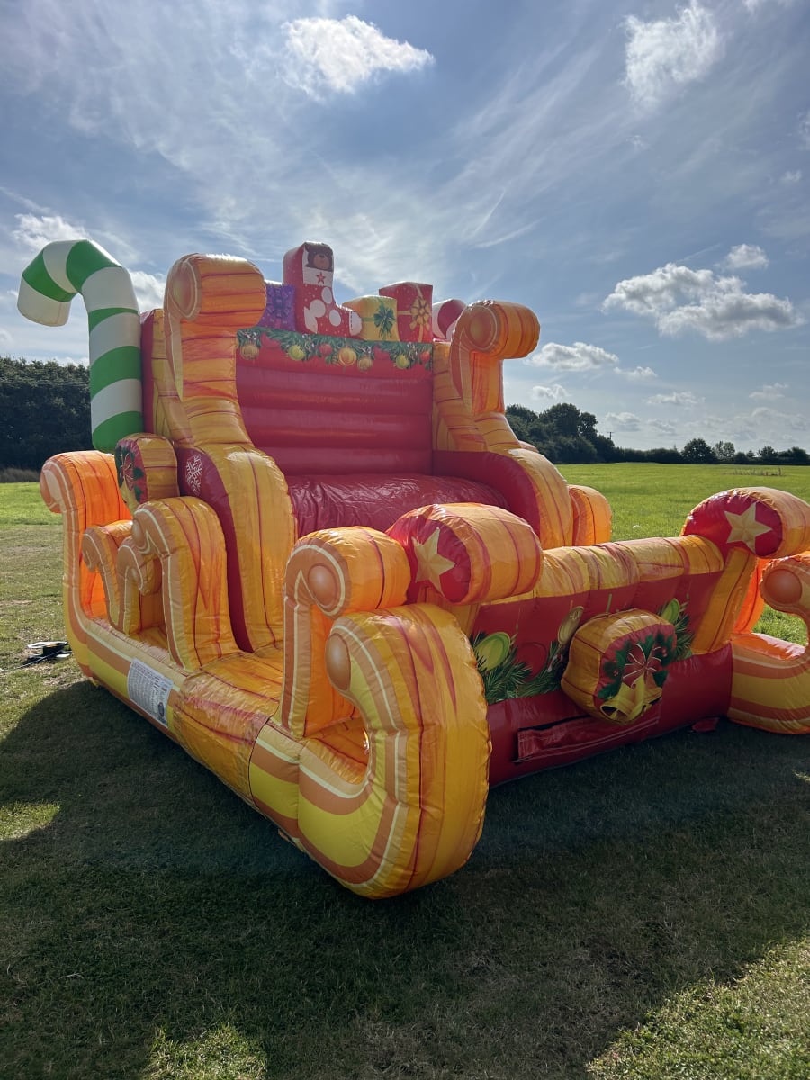 Brand new on to our hire fleet and one of only a handful currently in the whole of the U.K. is our amazing Santa's sleigh to hire in Essex , This inflatable has taken the American market by storm so we have worked closely with one of the countries leading manufactures and designed and created this beautiful Christmas hire product , This full size Santa's sleigh is large enough to have a whole family sit on for the perfect photo opportunity at any Christmas event such as a school Xmas fun day or even for corporate hire . Made in a high gloss material and with giant presents and even a few candy canes this really is a show stopping product to hire for any Christmas party or event within Essex . Want some other Christmas party ideas then we also have inflatable snow globes to hire along with Santa's Grottos , Christmas hook a duck games and many other fun fair games all of our Christmas themed products are listed on our Christmas inflatable hire page or call one of the team on 07895022736 if you need any help or advice .