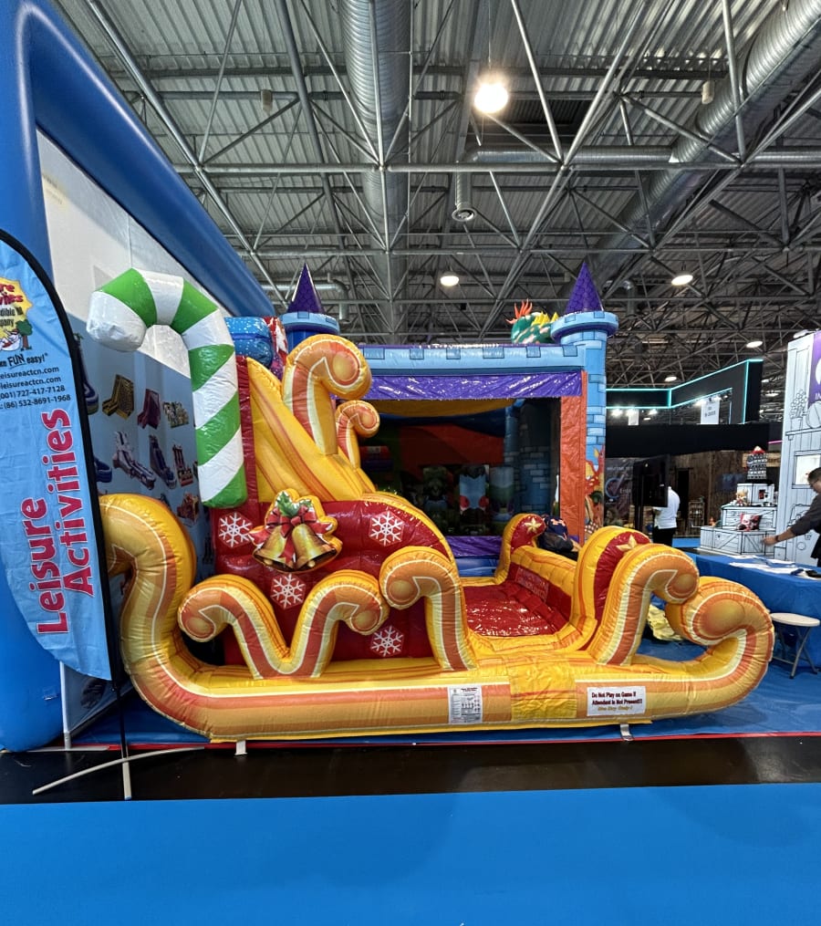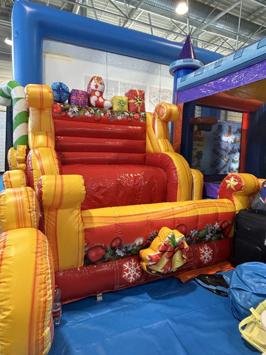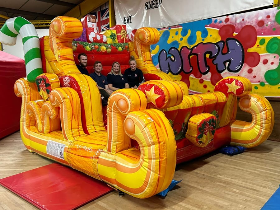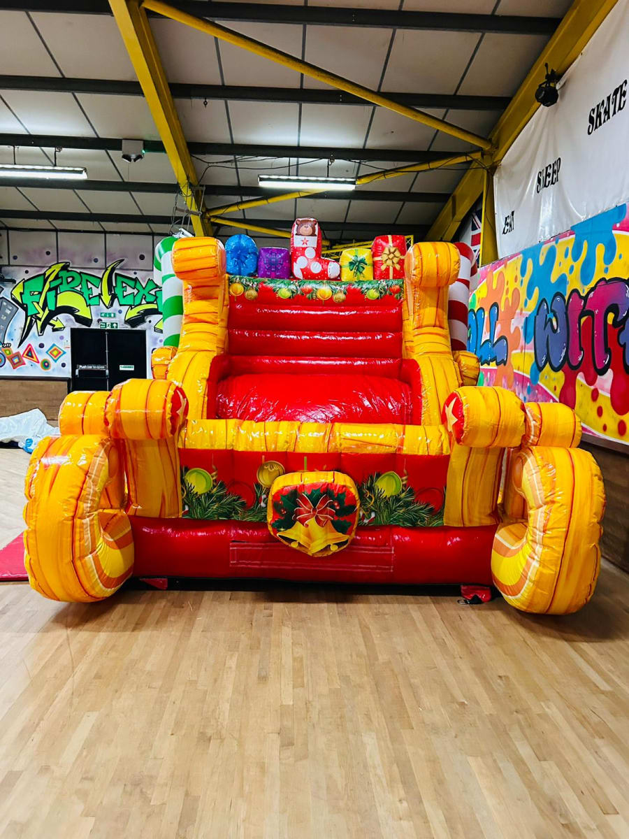 Brand new on to our hire fleet and one of only a handful currently in the whole of the U.K. is our amazing Santa's sleigh to hire in Essex , This inflatable has taken the American market by storm so we have worked closely with one of the countries leading manufactures and designed and created this beautiful Christmas hire product , This full size Santa's sleigh is large enough to have a whole family sit on for the perfect photo opportunity at any Christmas event such as a school Xmas fun day or even for corporate hire . Made in a high gloss material and with giant presents and even a few candy canes this really is a show stopping product to hire for any Christmas party or event within Essex . Want some other Christmas party ideas then we also have inflatable snow globes to hire along with Santa's Grottos , Christmas hook a duck games and many other fun fair games all of our Christmas themed products are listed on our Christmas inflatable hire page or call one of the team on 07895022736 if you need any help or advice .