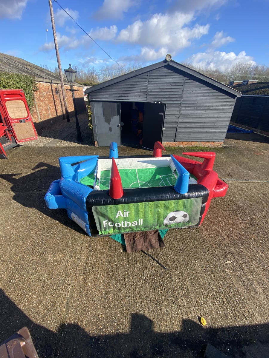 There is not many people who don't either play or watch our national sport of football so with this in mind we have the amazing air table football game available to hire in Chelmsford and all surrounding areas . This game can be played with 2-6 players at a time and is perfect for any football event , team building day or school fun day as well as garden party's and weddings . Simply place one of the supplied balls on the table and using the air jet blowers try and blow the plastic ball towards the opponents goal to hit the back of the net and roar for joy as your team score an epic goal in your very own cup final . If you wish to book more football related inflatables be sure to have a look at our penalty shoot out or one of our football themed bouncy castles we have on our fleet to hire . If you are looking to hire more than one item we have a great range of money saving offers on our packages page or CLICK HERE to contact the office via email and we can build you a package to suit both your budget and hire needs . Our delivery vans cover most of Essex just CLICK HERE to check we cover your area or call one of the team on 07895022736 . We have many other games which can all be found on our activity inflatable page or on our party extras page , bookings can be made online 24/7 just select your items and dates on the website and if they are free just hit book now and fill in your details and we will do the rest , it really is that easy and stress free when using our company to make your party or event a huge success .