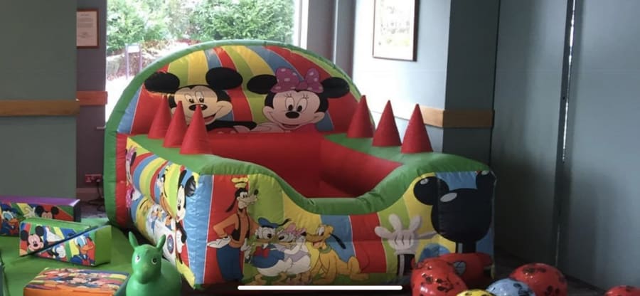 The perfect addition to any party with the younger children is our beautiful air juggler ball pool , finished with stunning art work of all the favourite disney characters including Donald Duck , Pluto , Minnie Mouse and the main mouse himself Mickey , This ball pool also has the added feature of 6 magical air jets to make the plastic balls we supply float in the air which toddlers are fascinated by . This ball pool can also be hired with matching soft play hire and bouncy castle all in the same theme just CLICK HERE to visit our packages page for some great money saving ideas , We also have a wide range of assault courses and adult bouncy castles for the older guests as well as a large range of extras such as pop corn and candy floss , garden games like giant connect 4 , we also can supply inflatable soft play tents for outside soft play hire to protect your little ones from the rays of the sun . Bookings can be made online using our diary and booking system 24 hours a day 7 days a week and our team are always on hand for any help or advice when making your booking just CLICK HERE to email the office or call one of the team on 07895022736 and i'm sure we can help you make the perfect choice to suit your soft play hire needs .