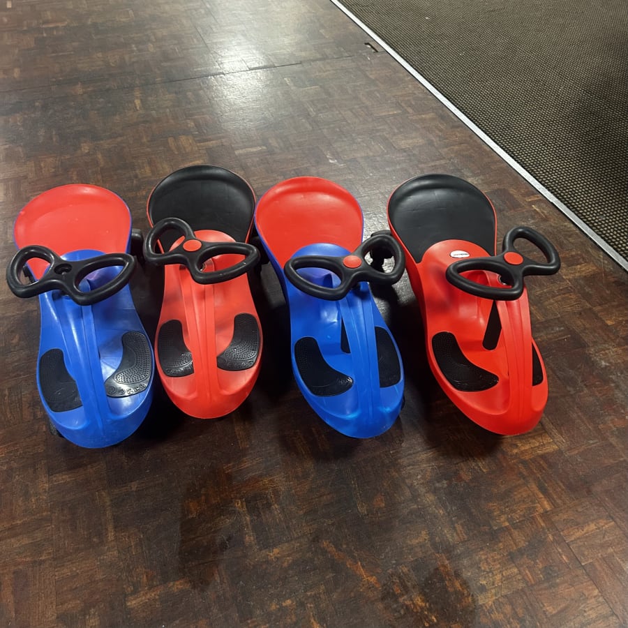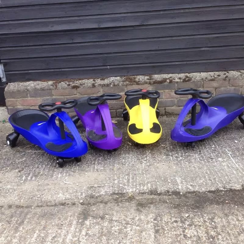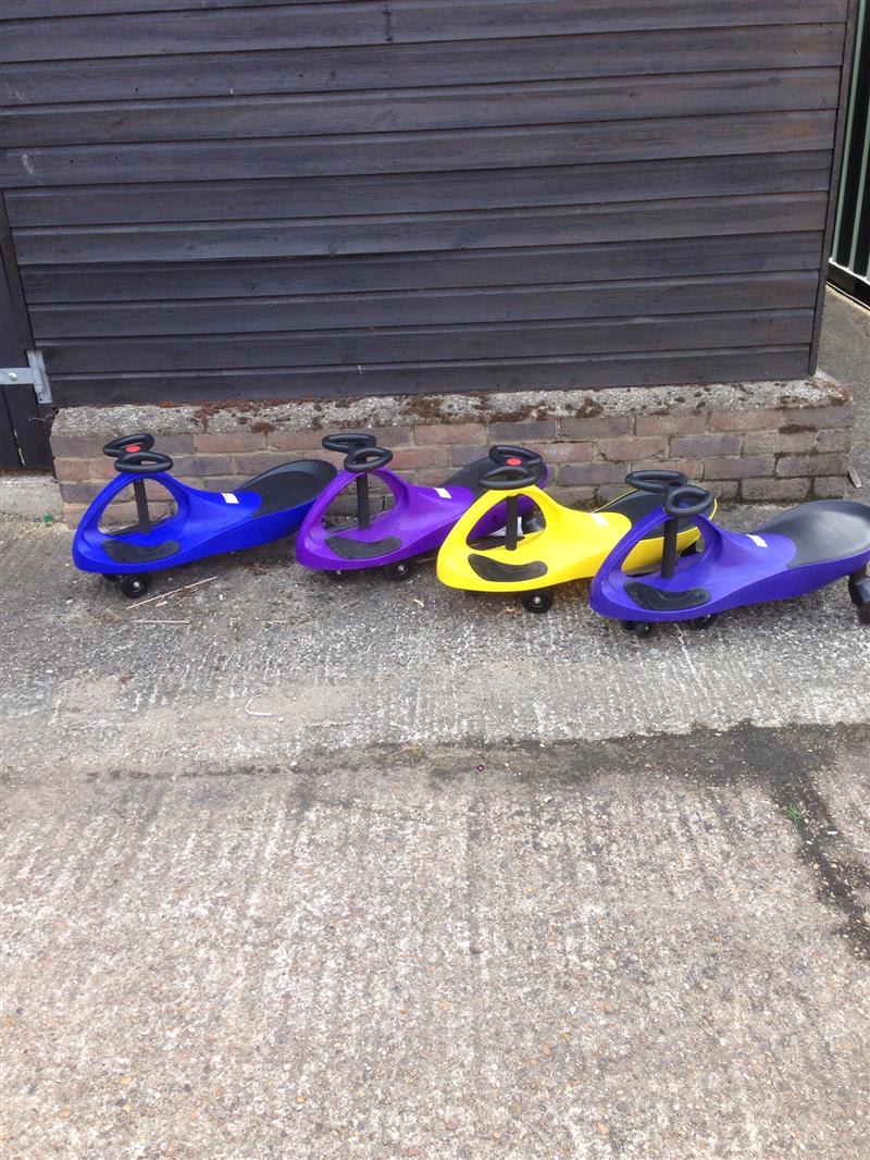 Why not add a set of 4 swing cars to your booking these are great fun for all ages both child and adult simply move the handle bars from side to side and your swing car moves perfect little extra for your bouncy castle booking only suitable for indoor use