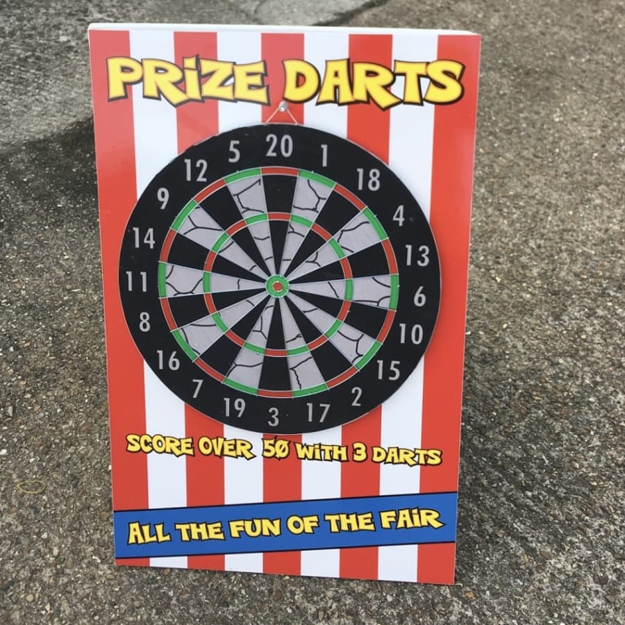 Prize darts is one of the all time classic fun fair games in years gone by players would shoot 3 darts to achieve a set score and win a goldfish , These days its more a bag of sweets a lolly but the basic game is the same. Shoot 3 darts score over 50 and you win a prize, We can supply low value prizes if you require please contact the office for more information via email info@bouncycastlehirechelmford.org.uk or call one of our event team on 07895022736 . As with all of our side show fun faire games to hire in Essex these are very popular on school fun days, [CATEGORY15]team building days [/[CATEGORY10]],weddings [/]and corporate entertainment our delivery drivers cover the whole of Essex some areas do have a delivery charge using our online booking system this will make you aware of any delivery charges that may occur.