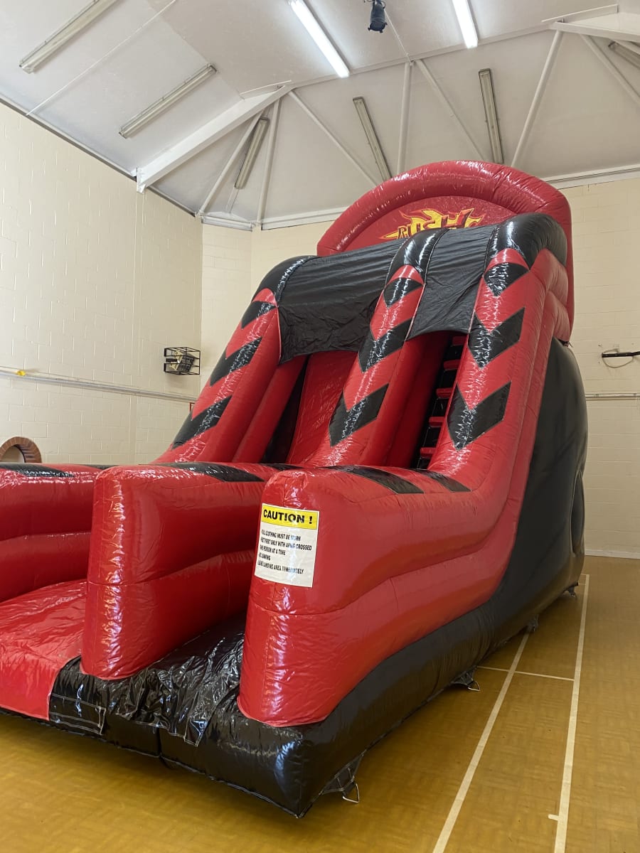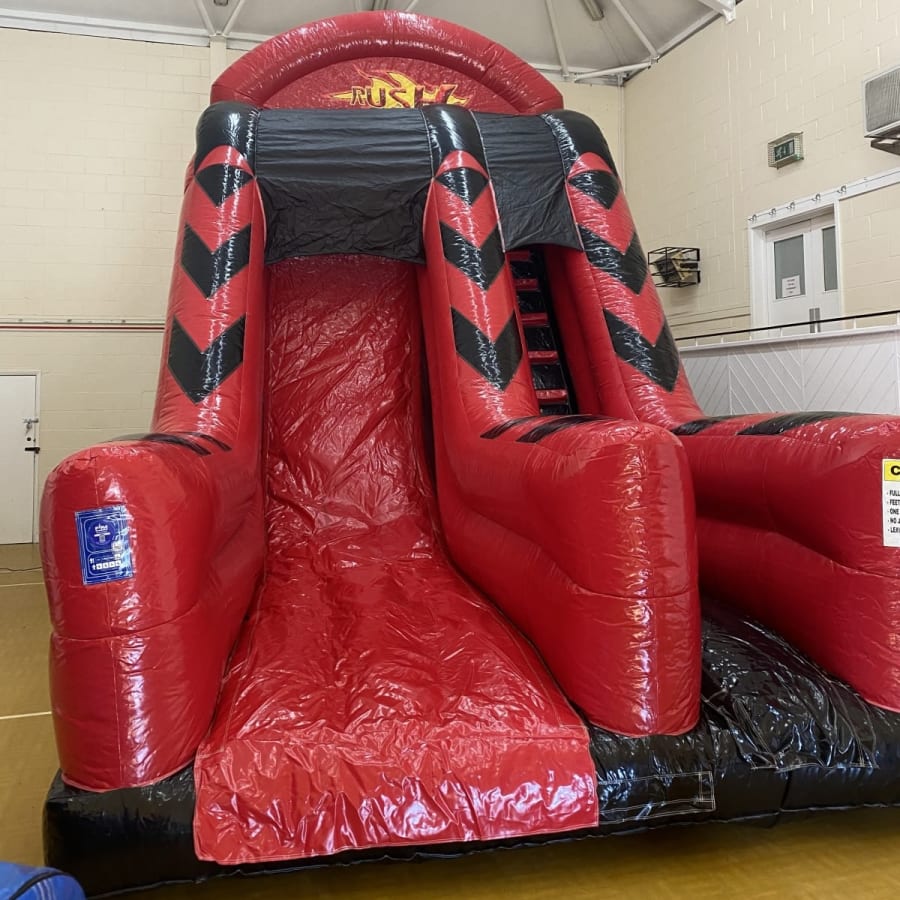 Brand new to our hire fleet is the amazing vertical drop slide for the ultimate in adrenaline slide hire nicknamed "The Rush Slide" , this really is the must have inflatable for any party or event . Standing over 20 ft tall this is the stand out item that has made us the talk of the town with only 2 of these rush slides available to hire in Essex we really are pushing the boundaries of inflatable slide hire in Chelmsford Essex . Climb up the steps to reach the summit of the slide which is a whopping 10 feet high the sit down at the top and don't look down if you are faint hearted the whiz down the vertical slide into the long run off area and if you have the nerve then have another go . We also have many other amazing slides to hire such as our disco slide and the amazing Helter Skelter slide to hire as well as a comprehensive range of high energy activity inflatables , Adult bouncy castles , disco domes , assault courses and even surf simulators and interactive Nerf arenas , so we really do cover all the bases for entertainment for any party or event . The rush slide is perfect for corporate entertainment , weddings , garden parties and even school inflatable days . Our vans cover most of Essex just CLICK HERE to check your area is covered if you cant find your location on our page just call one of the team on 07895022736 or CLICK HERE to email the office and one of our team will be only to happy to help you make the right choice for your party or event drawing on over 10 years experience so you are in safe hands when using 1st2 bounce for your hire needs . Booking your rush slide has never been so easy with our online diary and booking system simply select your date to check availability and then to proceed just click book now and leave the rest to us it really is that easy and stress free to make your event the talk of the town .