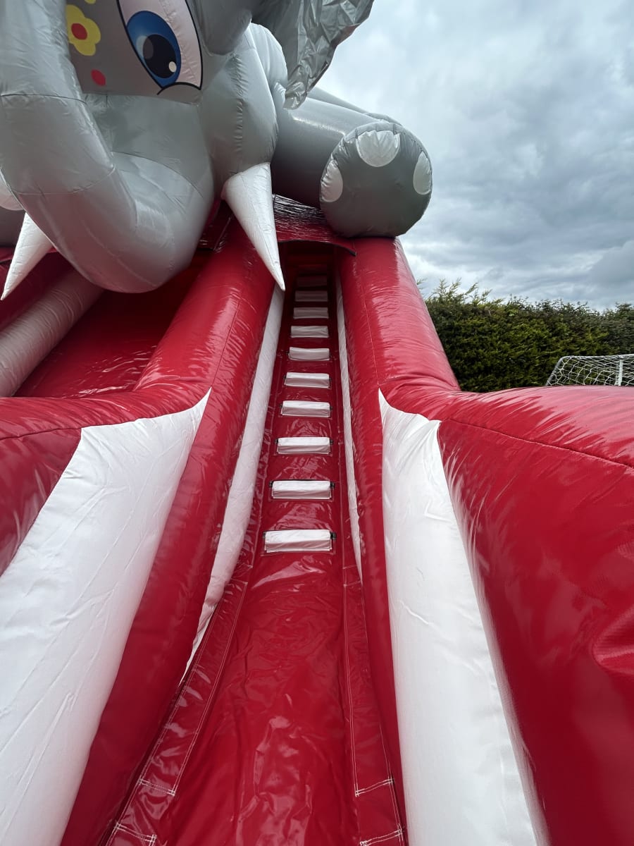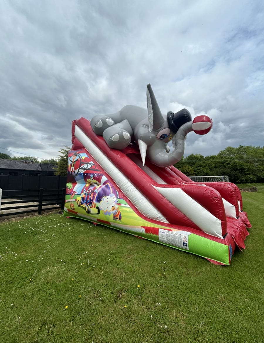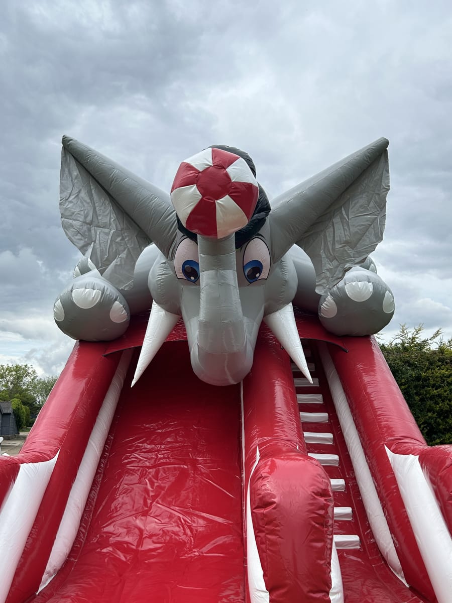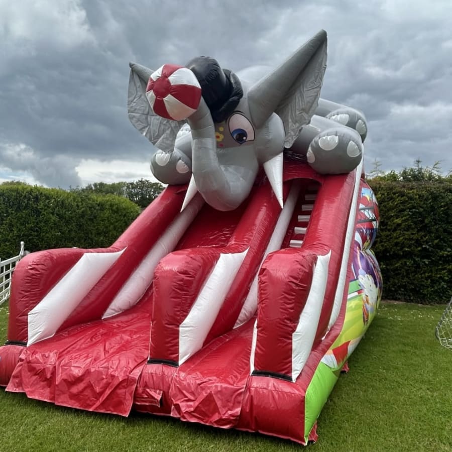 Looking for an inflatable slide to hire in Essex then we have this custom made Circus themed inflatable slide to hire in Chelmsford and surrounding areas , Designed by our company and made in the U.K. this inflatable slide will be a stunning asset to any party or event made in a high gloss material with eye catching artwork along the sides and finished off with a show stopping 3D life sizes elephant your party really will obtain the "wow" factor . Want your party or event to go on in to the night or even for a few days then we offer both an overnight hire option and discounted rates for multi day hires both of which you can select on your booking form . Want to add something for the more energetic guests at your event then we also have one of the largest ranges of