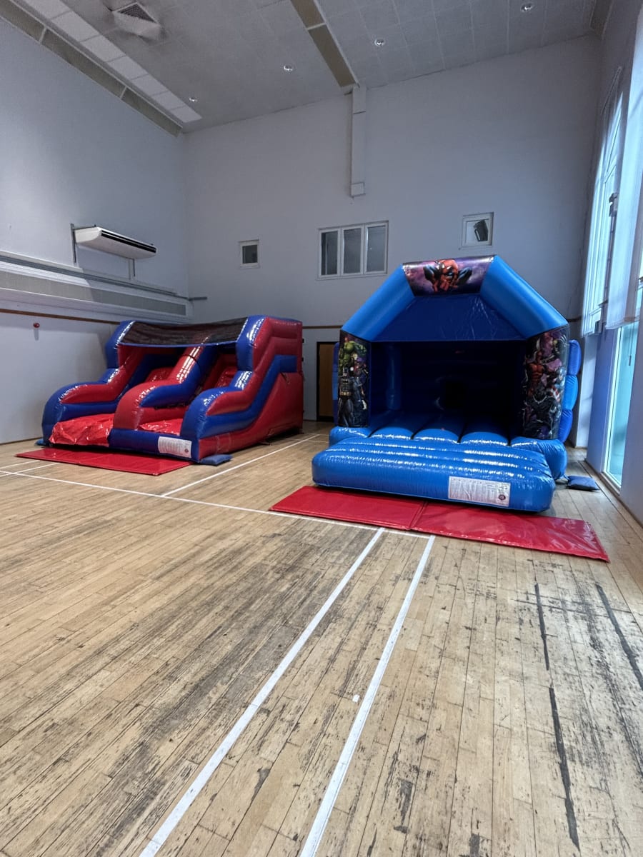 or call one of the team on 07895022736 . This venue has a large free car park for all of your guests and each hall also has its own kitchen facilities you can add to your booking with them , we work very closely with the Springfield Parish centre and are now their recommended suppliers for this venue we hold all the relevant paper work such as insurance documents and inflatable safety certs which we can email to you just