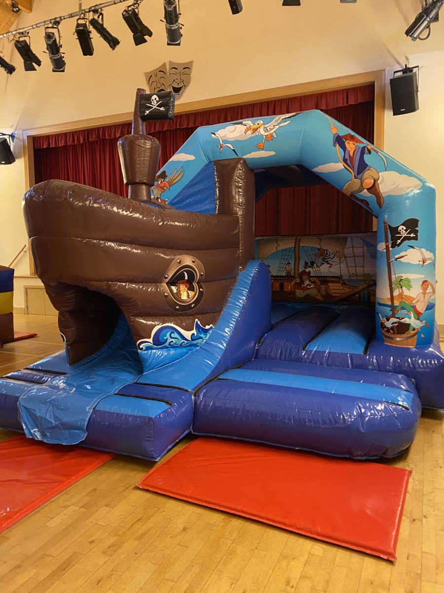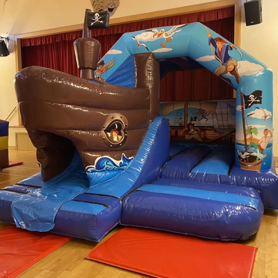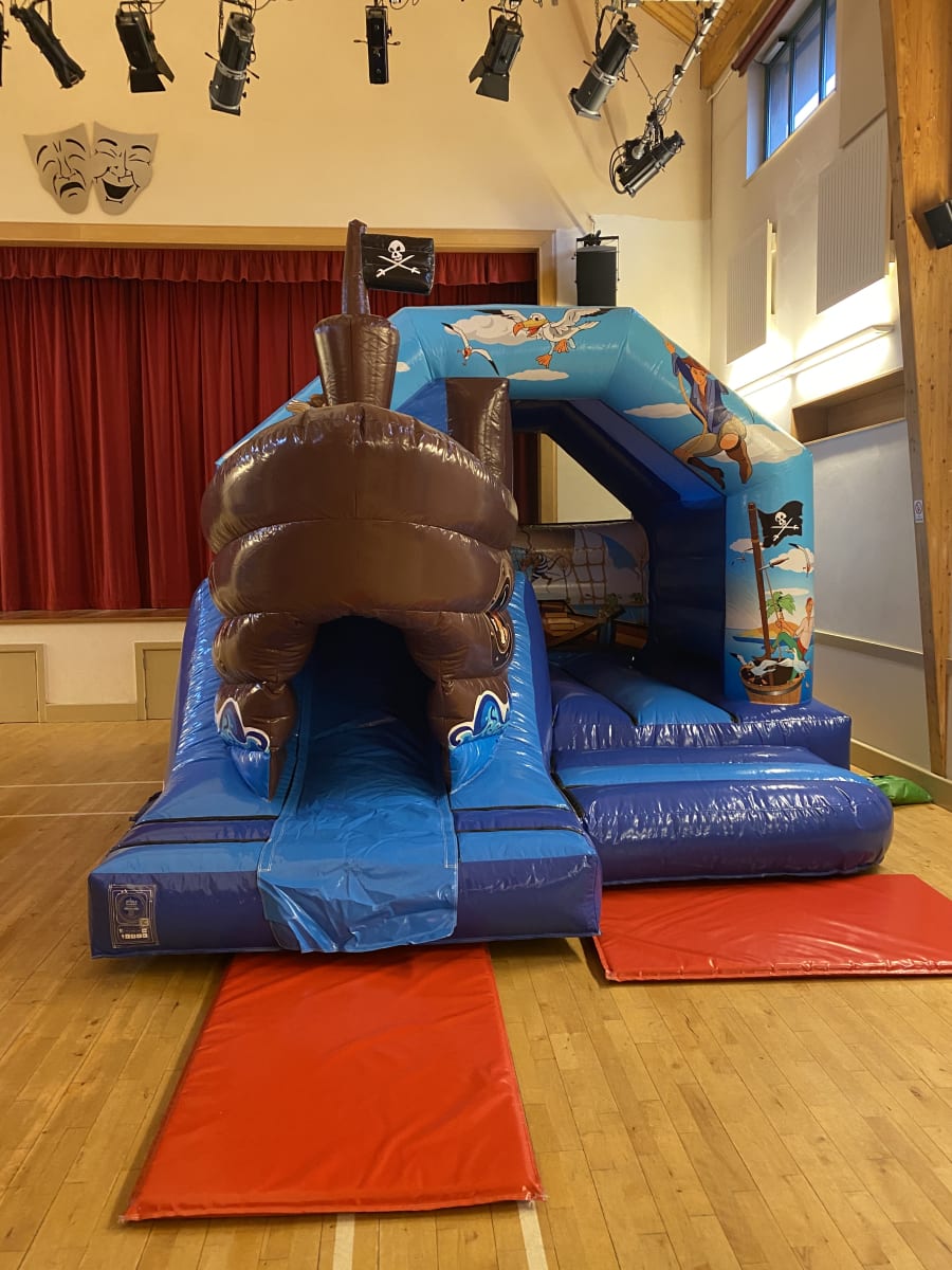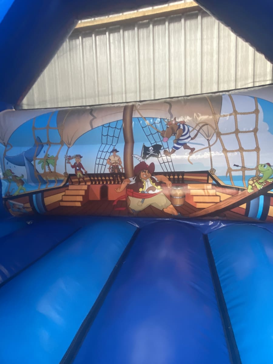 If you're looking for the ultimate pirate bouncy castle to make your children's party or event the talk of the seven seas then this stunning high gloss front slide pirate themed bouncy castle really is the perfect choice for your little pirates . similar to a standard children's pirate bouncy castle but with the added twist of a slide coming out from the front in the shape of a pirate galleon and for that finishing touch even has a mast flying the jolly roger flag to make sure everyone knows the pirates are about , We have one of the largest range of pirate themed inflatables currently in Essex to hire from normal castles and soft play , assault courses right up to the incredible inflatable pirate galleon one of only 2 in the UK . Why not check out our full range of pirate products on our dedicated page . Looking for fantastic deals on our hire items then just CLICK HERE to see our amazing money saving packages we have to offer , Need some party extras such as connect 4 or even giant jenga then our extras page has all of these and more . Booking your pirate bouncy castle has never been so easy using our online diary and booking system just select your item and date to check availability then if its free just hit book now and fill in your details and thats about it , if you need any help or advice just call one of the team on 07895022736 or CLICK HERE to email our office and we will be only to happy to help . Our vans cover most of Essex each and every day just check out our areas covered page for more information .