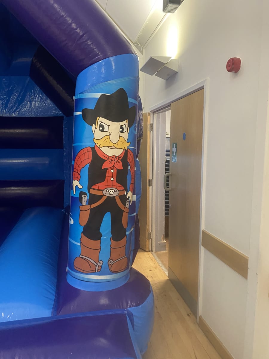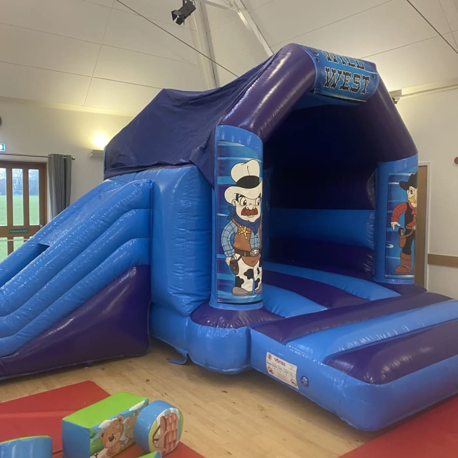 Looking for some wild west party ideas in Essex then we have just the inflatable for any Billy the Kid or Jesse James fans with our amazing Wild West themed bouncy castle available to hire in Chelmsford and all surrounding areas where we can bring the magical period of the 1860,s till the 1890,s of the American frontier right in to the present day for your party or event made in a high gloss material and with 2 gun slinging cowboys on the entrance of the castle you really will feel like you are entering the swing doors of the local towns saloon bar . And with the extra feature of a slide coming out from the side your Western cowboy guests will be kept entertained all day long as they sip on their moonshine and eat Buffalo burgers around the open fire tell stories of folklore about their adventures . Should you wish your party to go on in to the night or even for a few days then we offer both an overnight hire service and discounted rates for multi day hires both of which you can add on your booking form . Looking for some other Wild West party ideas then we also have cowboy themed ideas such as our cactus lasso game or our western shootout both of which can be found on