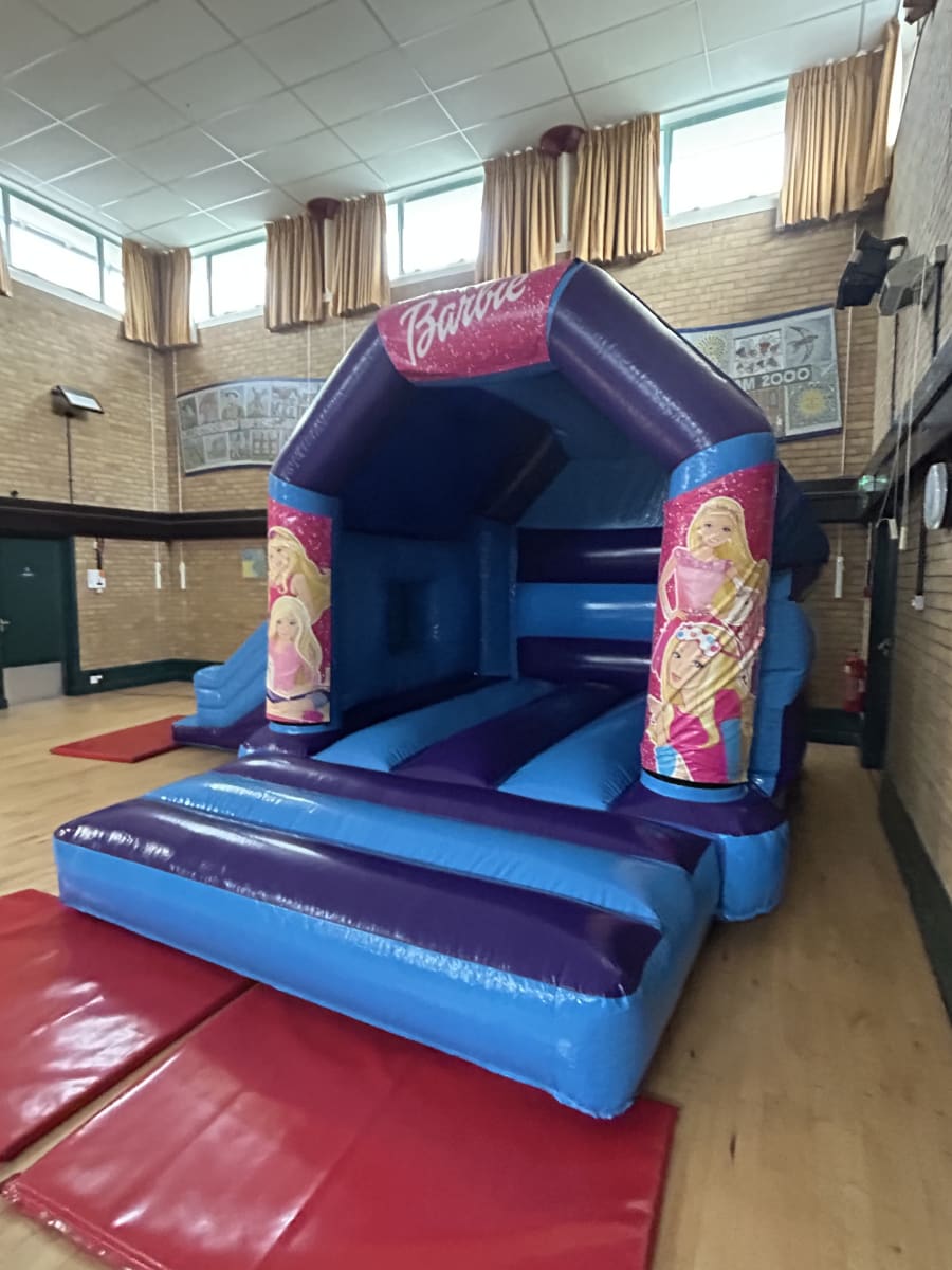 For so many millions of little girls their best friend has been Barbie the worlds most famous children's doll and why not invite her to your very own event with our amazing Barbie bouncy castle available to hire in Chelmsford Essex , Made in a stunning high gloss material with a built in rain cover and for an added twist a slide coming out from the side all finished off with bright and vibrant artwork of Barbie herself this really will have your children bouncing and sliding all day long with their very special friends . Want the party to go on in to the night or even for a few days then we offer both an overnight hire service and discounted rates for multi day hires both of which you can add to your online booking form , Want something for the younger guests then we have a wide range of