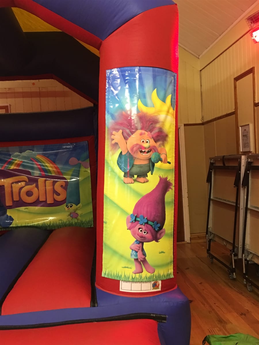 Lets get set to party with our all new Trolls slide combo bouncy castle featuring all the favourite characters from the hit show such as Branch, Biggie and the star of the show Poppy. This bouncy castle has a built in rain cover to ensure your children's party will not be affected by the weather. Our bouncy castles to hire are all safety tested to the highest standards and made in the UK. We cover almost all of Essex