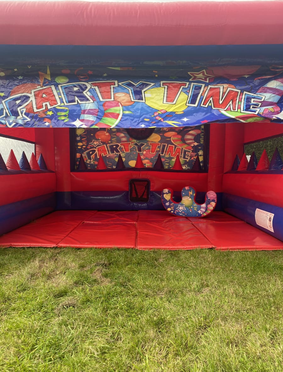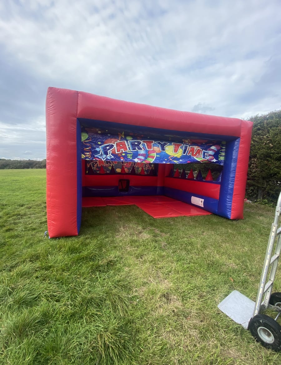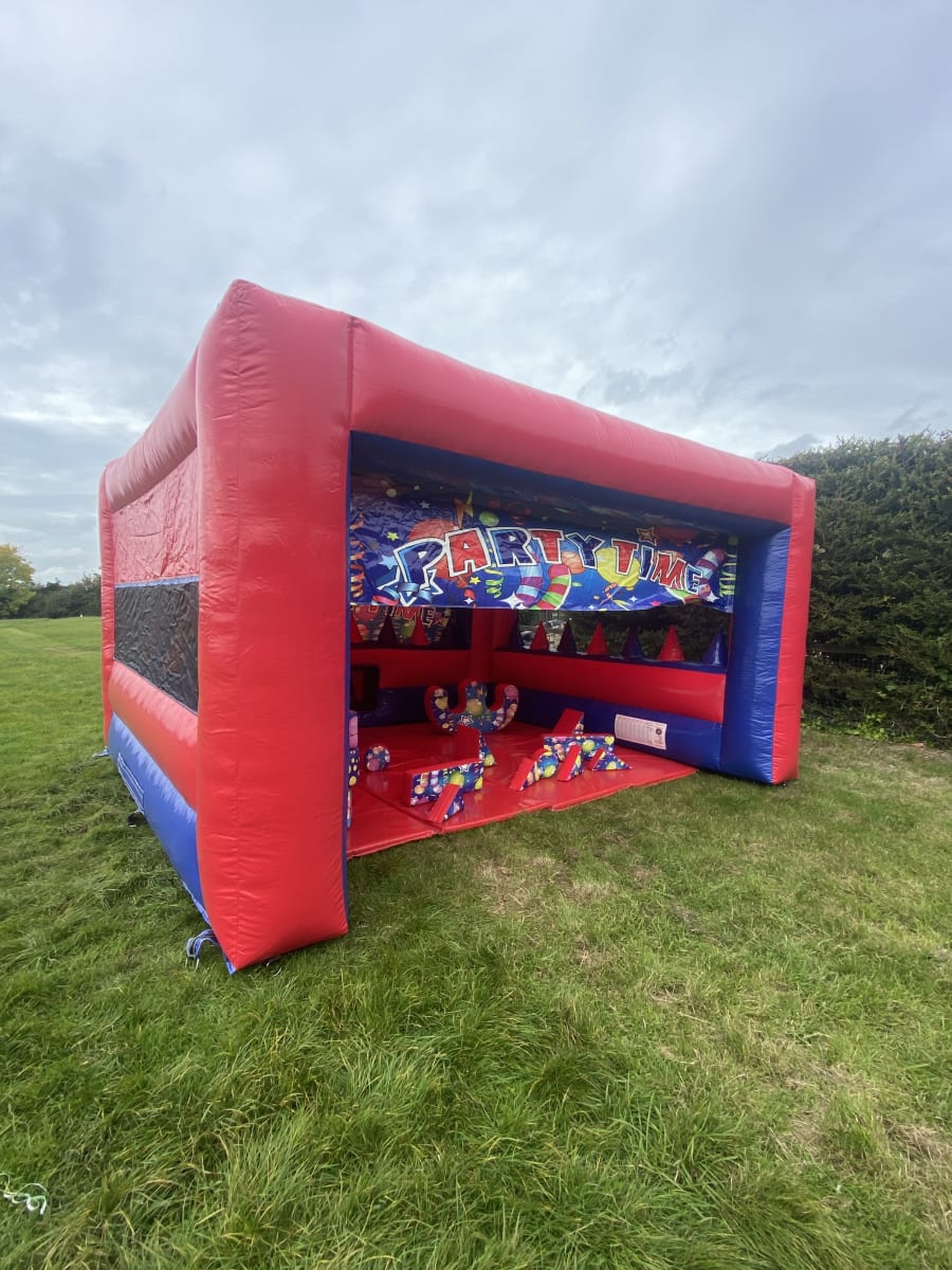 Having a party at home in the garden and looking for a focal point for the children to either chill out , eat or play then this inflatable play shelter is a perfect addition to any party or event , measuring 16 foot in width and 14 foot deep there is plenty of room to lay out some tables and chairs and with a built in sun and rain cover this will protect your younger party guest from mother natures weather conditions we have also added air jugglers around the sides and supply plastic balls so your children can magically float the balls in the air , another very popular use for the party tent is to add a matted area and matching soft play for the ultimate garden soft play package but the fun doesn't stop there either you can add sensory lights and speakers to this shelter and play all your children's favourite tunes via the blue tooth speaker making the perfect sensory soft play package to hire in Essex . The party time range of inflatables is hands down our most chosen theme as it is completely gender neutral so from soft play hire , matching ball pools and castles for the younger age group right up to large adult bouncy castles hire and massive assault courses up to a whopping 210 feet in length we have got it all . Although we are a Chelmsford based bouncy castle hire company our vans cover much of the surrounding areas just CLICK HERE to see areas covered or for out of area deliveries please call one of the team on 07895022736 and we be only to happy to give you a quote for your pontential booking .Many of our clients look to book multiple items so with this in mind we have some fantastic deals on our packages page or just CLICK HERE to email our team and we can custom build a package to best suit your hire needs within your budget . We have many different themes of bouncy castles , soft play hire , inflatable slides and assault courses from princess to pirate , super heros to dinosaurs and also one of the largest ranges of retro fun fair inflatables to hire in the U.K. . To add the finishing touches to your party or event why not have a look on our extras page to see some of our amazing add ons such as inflatable darts , giant space hoppers and buzz wires , booking your inflatables has never been so easy using our online diary and booking system available 24 hrs a day 7 days a week it really is that easy and stress free when using our company .