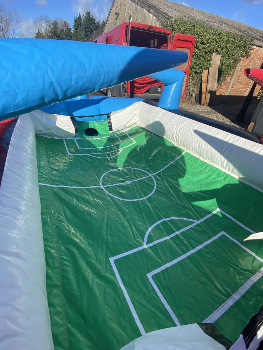 We have all played the classic table football game now we have the very latest inflatable game to hit the market with this amazing inflatable table football game , This game is great for all ages and can be played with 2-6 players and is a perfect addition to any football party ideas in Essex you may have so how does it work ? well the blower inflatables the table itself and has 6 air jet nozzles that can be moved in different directions to blow the supplied ball around the pitch and into the oppositions goal the winner of the game is simple who ever scores the most becomes the champion of your football party . Looking for other football party ideas then we also have