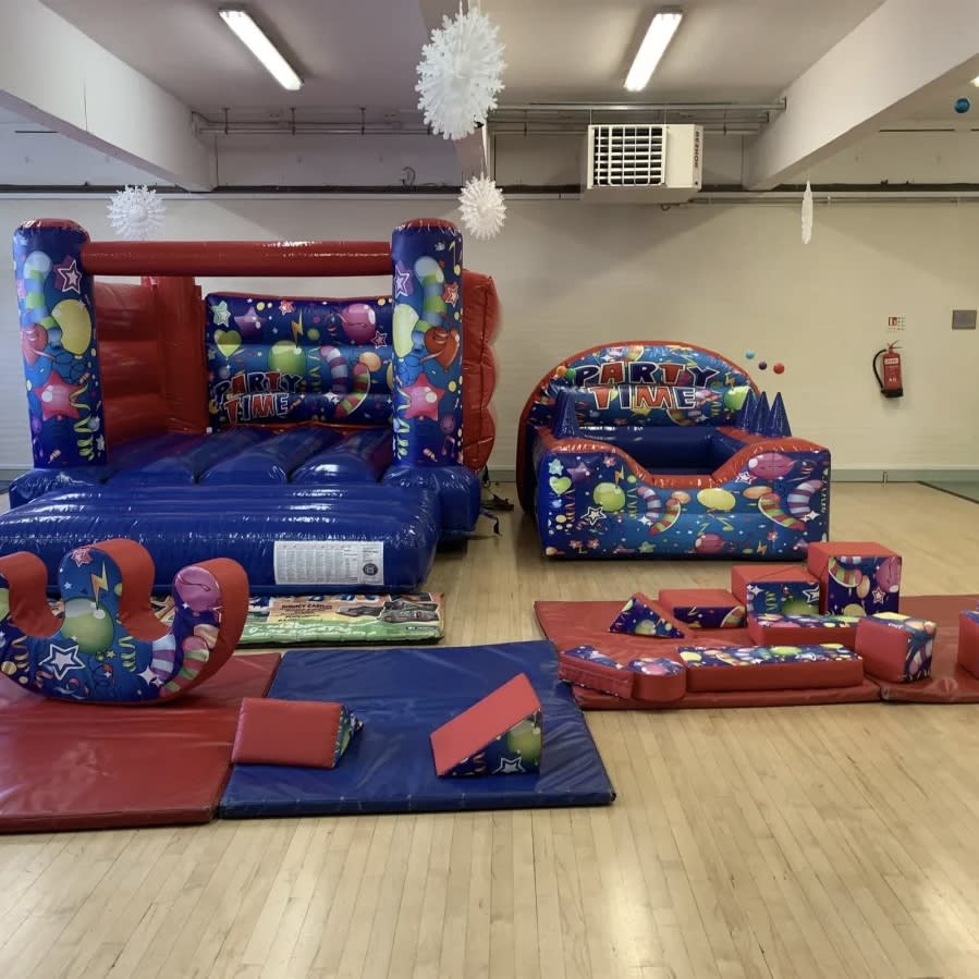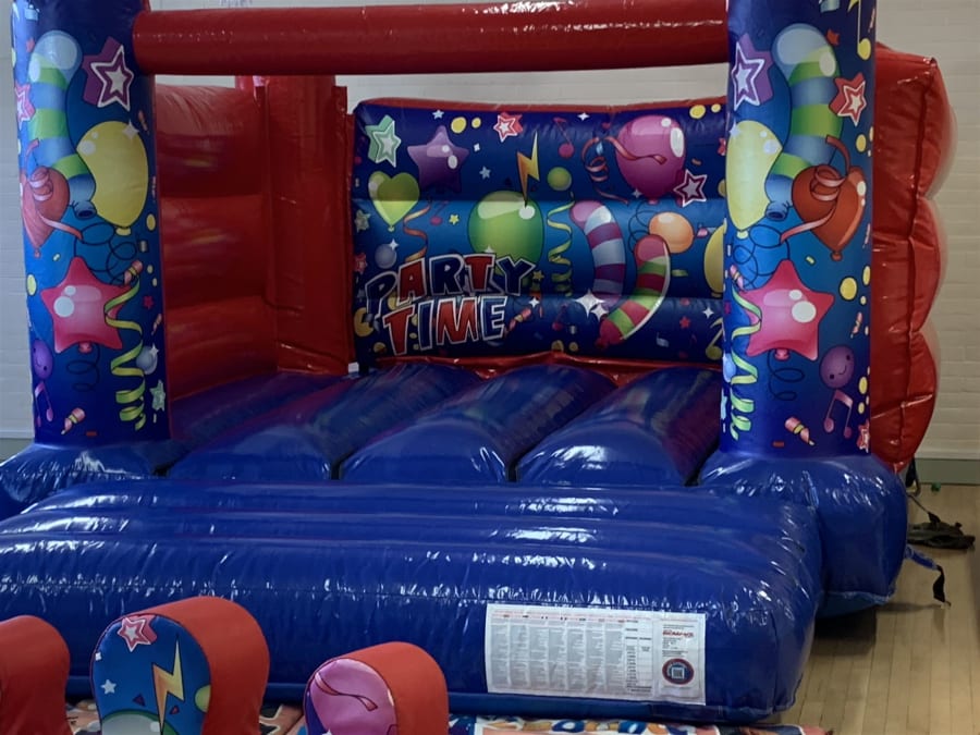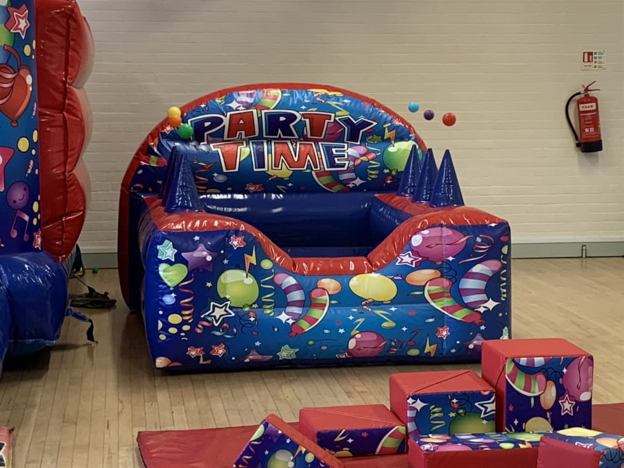 One of our new packages for this year is this fantastic money saving party package featuring a low height 12x12 bouncy castle in a stunning high gloss finish with amazing unisex party time artwork and the fun doesn't end there we also supply our party time ball pool with the added bonus of 6 air jugglers which magically float plastic balls in the air to keep the kids entertained more than the average ball pool , this ball pool comes filled with approximately 1000 play balls . And to complete the ultimate party set up our 17 piece soft play set which comes with a matted area for safe fun for the little ones . Want to add some finishing touches to your party such as giant space hoppers or side show games then we have some fantastic ideas on