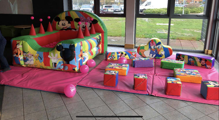 A perfect way to entertain the younger age group has always been with soft play and this really is a stand out set , featuring all the disney favourites such as goofy , donald duck , minnie mouse and the main man himself Mickey Mouse . This 14 piece soft play set is made in stunning bright and vibrante colours and comes supplied with a large matted area for maximum safety for your little ones along side this comes the beautiful Mickey air juggler ball pool , like most toddlers ball pools have always been a popular item and this stunning item comes with the added attraction of 6 magical air jet jugglers where the children place the plastic supplied balls onto the jets of air to float in mid air keeping them fascinated for hours on end in a safe environment while the older children create buildings out of the soft play hire set that comes with this fantastic money saving package . This is perfect for both outside garden hire and hall hires as well for a list of all local halls just CLICK HERE to get some details of many of the local halls in chelmsford and all surrounding areas , if you are unsure or would like some advice about planning your party or event then you can call one of our team anytime on 07895022736 or simply CLICK HERE to email our office and we would be only to happy to help . Our vans cover soft play hire in Chelmsford , Billericay , Brentwood , Maldon , South Woodham Ferrers and all surrounding areas just CLICK HERE to check if we cover your booking area . Bookings are made very easy for our clients simply select your products check availability online then you can just click book now and our system will do the rest for you 24 hours a day 7 days a week it really is that easy and stress free to make your party something special .