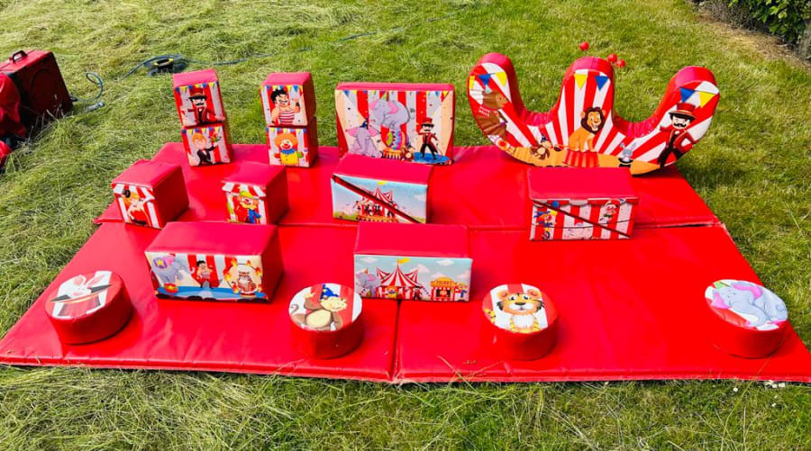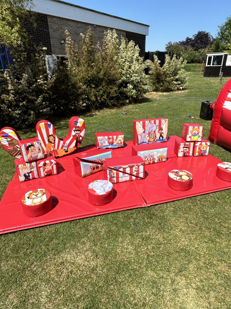 New in to our hire fleet in this amazing Circus party package featuring the show stopping 3D circus bouncy castle with a built in slide and a matching 18 piece soft play set . The Circus bouncy castle for hire is made in a high gloss material and features stunning bright and vibrant artwork and for the real wow factor has a giant Elephant balancing a ball on his trunk and finished off with a top hat for that extra wow factor to really make your party the talk of the town pair that up with the stunning 18 piece circus soft play set then you really have got the magic of the big top for your party or event . Looking for more circus and funfair party ideas then we have some great ideas such as our very popular carnival side show games , Inflatable hoopla , Carnival games stall and even a coconut shy all of which can be found on our party extras page and fun fair hire page . Although we are a Chelmsford based bouncy castle hire company our vans cover most of Essex just see our areas covered page and for further locations not listed just call one of our team on 07895022736 and we can supply a delivery quotation . We currently have the largest range of fun fair and circus products in the U.K. including giant helter skelter slides to hire , Victorian carrousel , Ferris wheels and even giant inflatable games stalls so if you are looking for an even bigger Circus package just CLICK HERE to email our office and we can custom build you a package to suit both your budget and hire needs with a full U.K. delivery service .