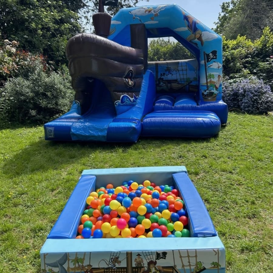 Looking for some Pirate party ideas for your children then this package is the perfect solution for any young Pirate fan, featuring a stunning high gloss pirate bouncy castle with a built in 3D slide coming out from the front this really will set the tone for any Pirate themed party as they bounce and slide the day away while dreaming of their swash buckling adventures on the seven seas , add to that a beautiful 18 piece soft play set where your children can use their imagination to build and create towers and dens on a supplied matted area and to finish the whole package off it also comes with a pirate themed ball pool complete with over 500 balls for the little ones to play in creating a stunning package for all ages from a few months old to the older children at your event . Want the party to go on into the night or even for a few days then we offer both an overnight hire service and discounted rates for multi day hires both of which you can add to your booking form online . Looking for a few other extras to add to your party then we have some great ideas on